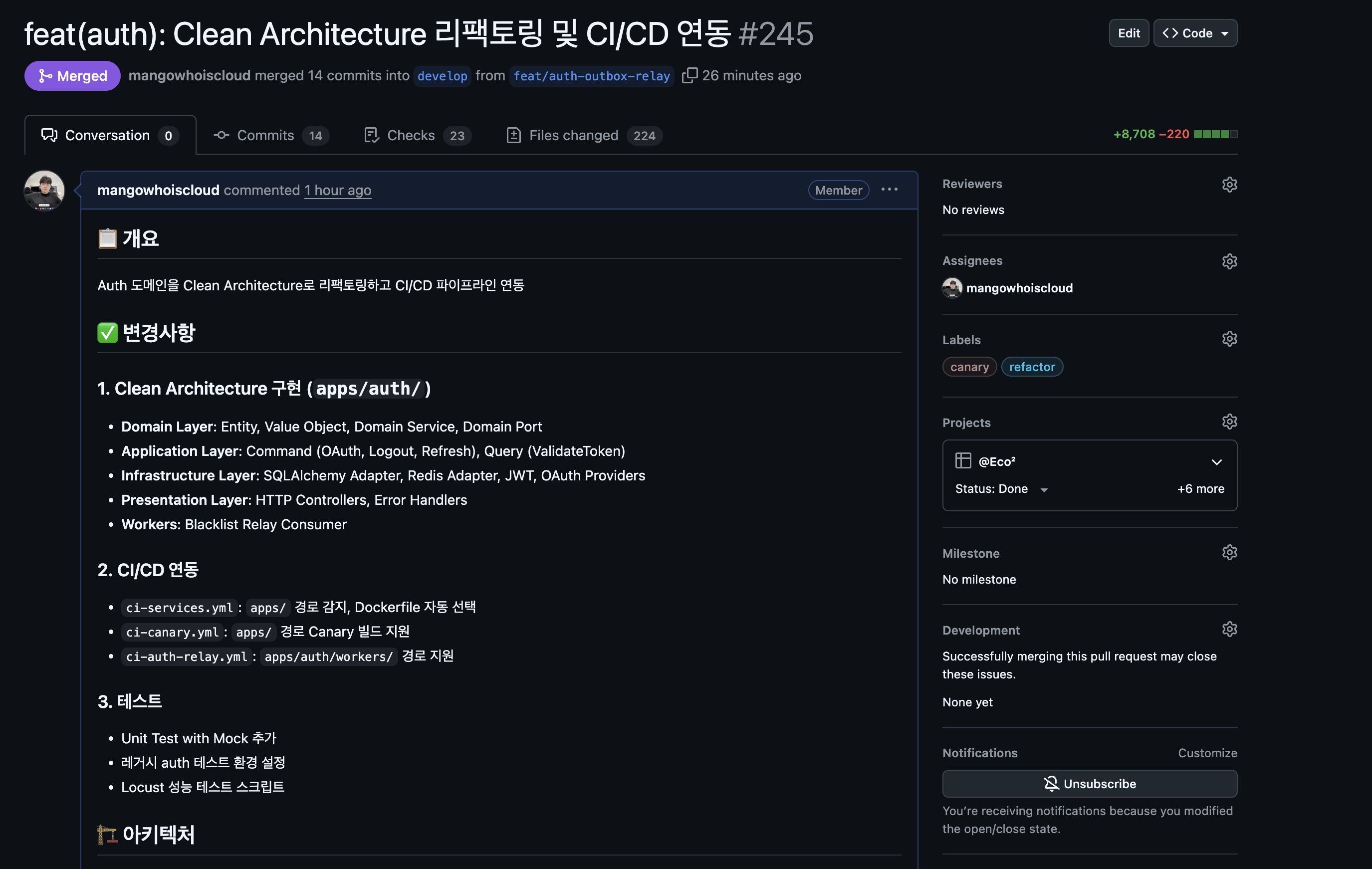 이코에코(Eco²) Clean Architecture #3: Auth 버전 분리, 점진적 배포이코에코(Eco²)/Clean Architecture Migration 2025. 12. 31. 03:27