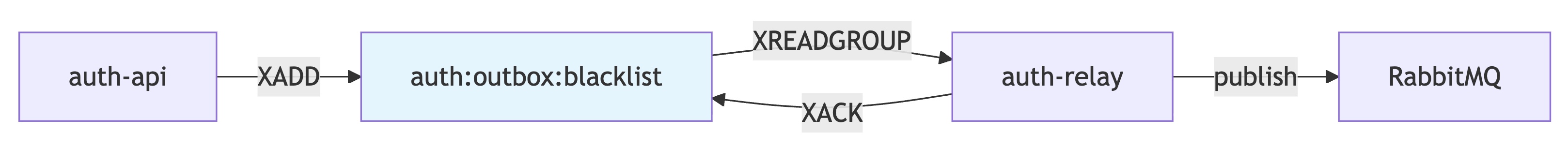 auth-relay는 Redis Streams Outbox 절차를 수행.