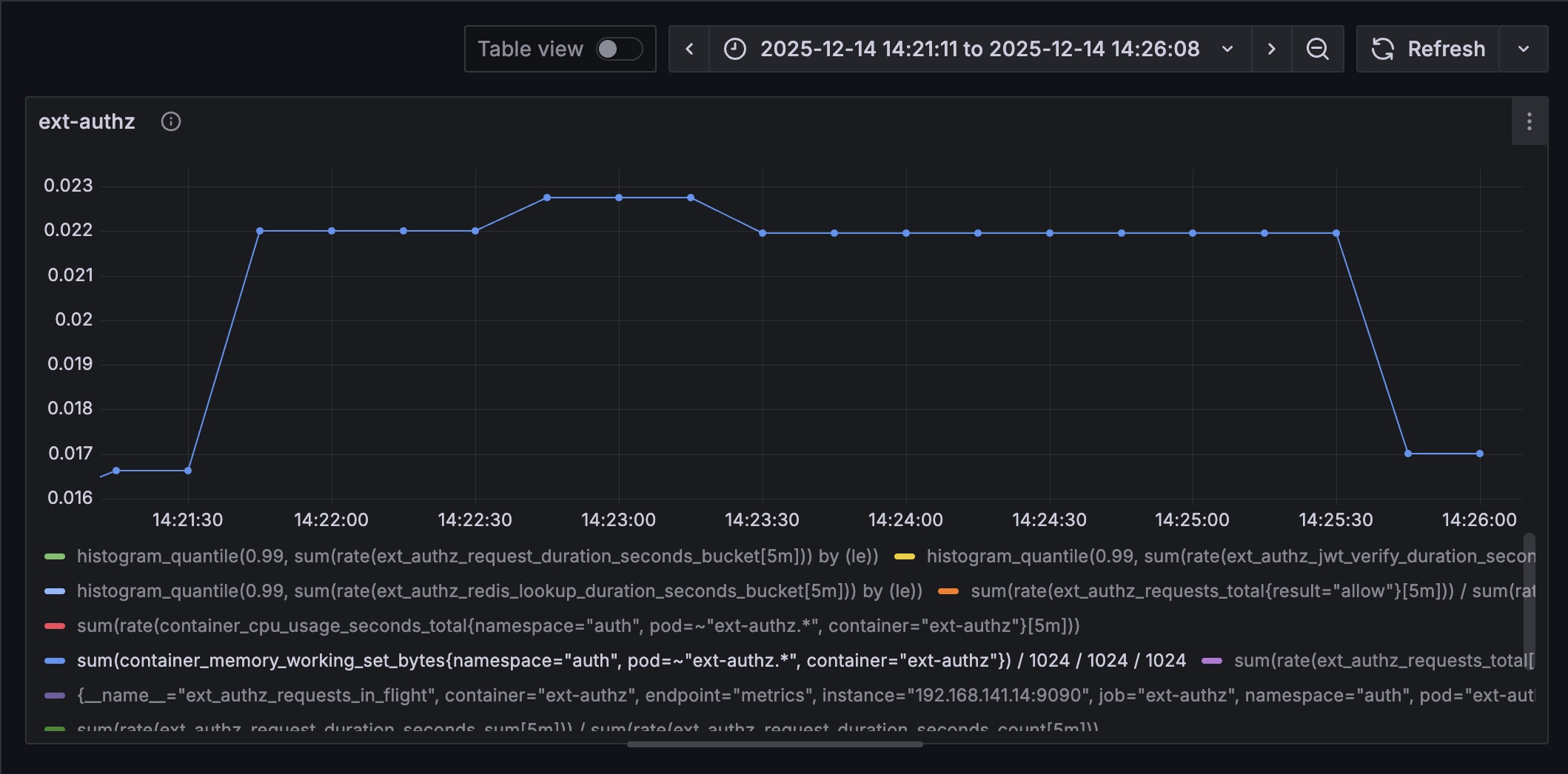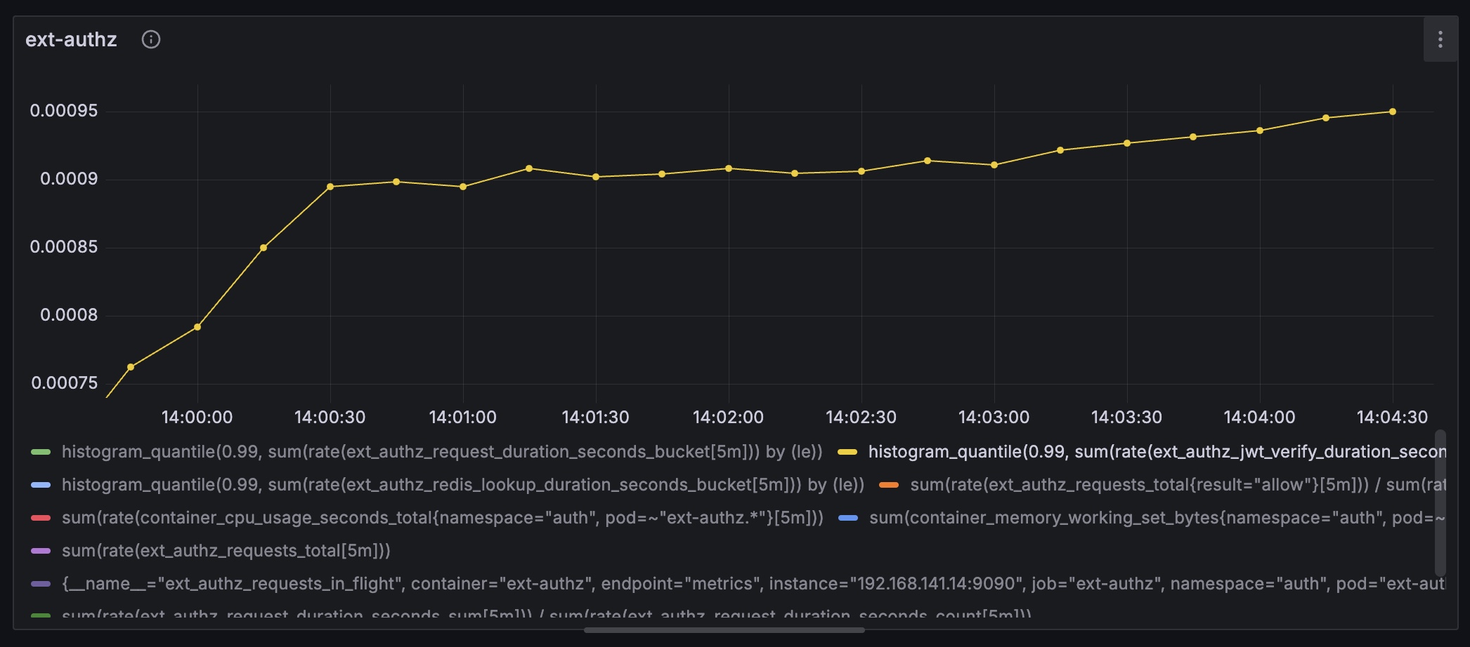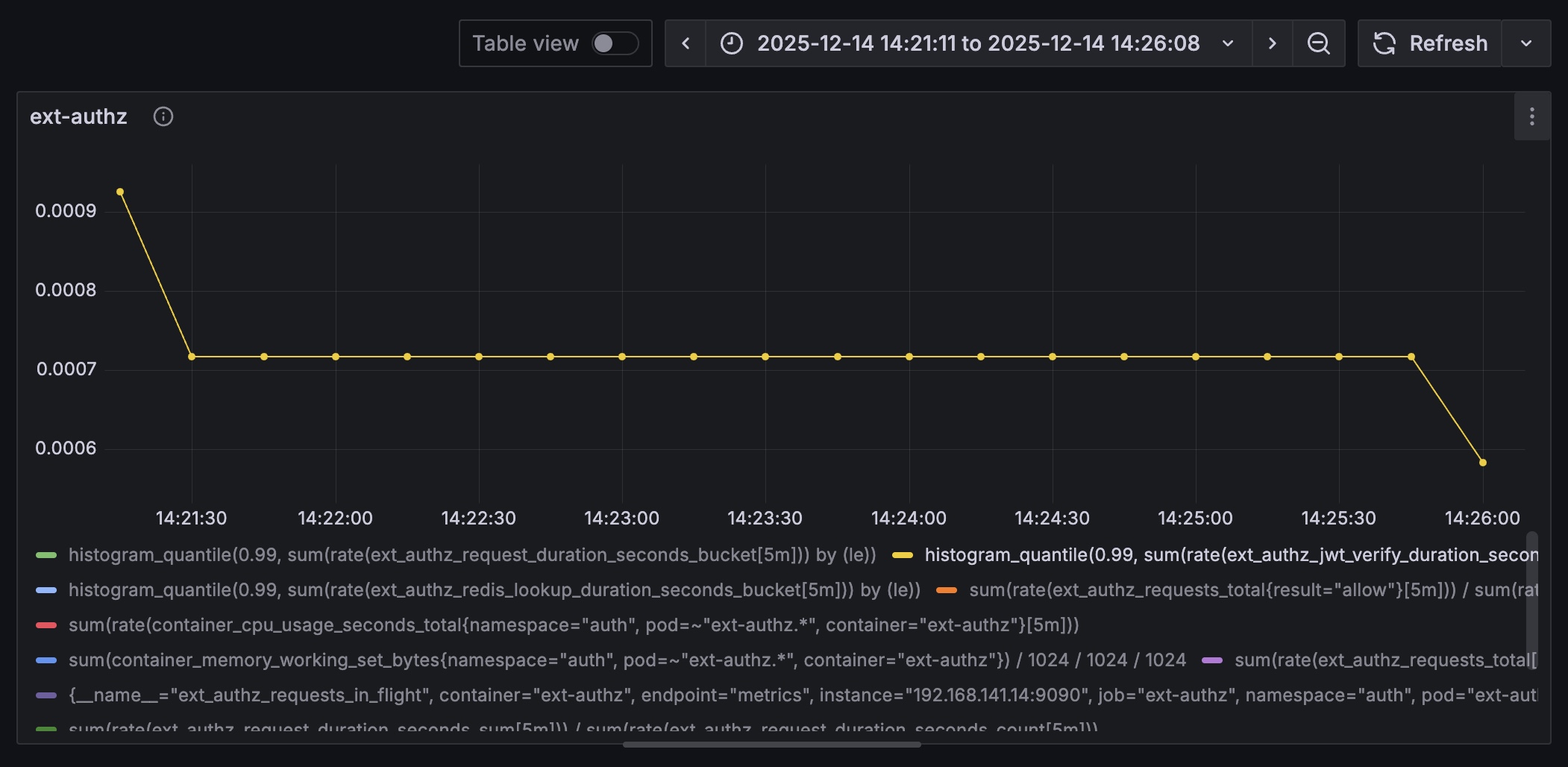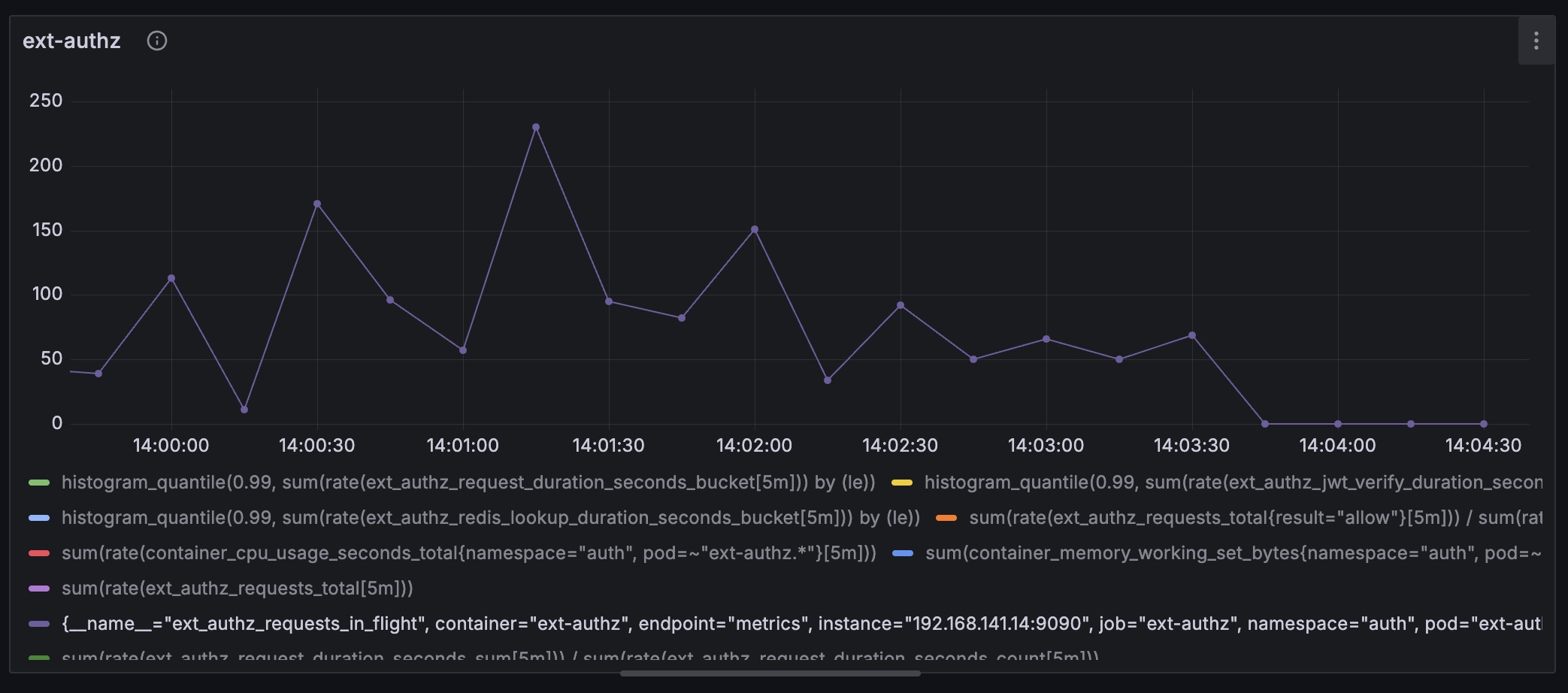 Locust의 RPS는 전체 플로우를 기준으로 잡히기에 보다 정밀한 측정을 위해 ext-authz의 RPS를 측정하는 쿼리를 추가했다.