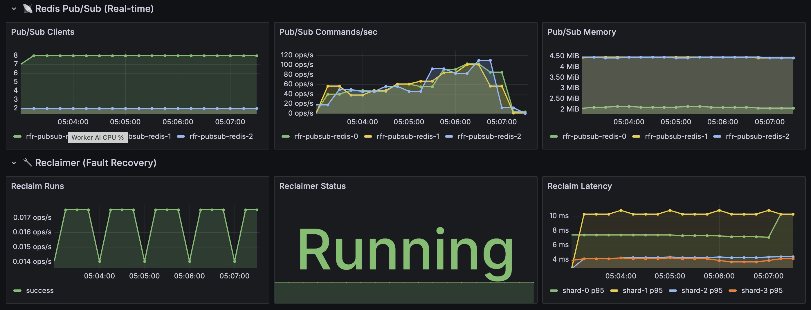 { "test_info": { "target_vus": 1000, "duration_seconds": 1769544162.729404 }, "results": { "total_submitted": 1518, "total_completed": 1469, "total_failed": 33, "success_rate": "97.8%", "reward_rate": "0.0%" }, "latency": { "scan_submit_p95": "787ms", "poll_p95": "2609ms", "e2e_p95": "173.3s", "e2e_avg": "121.3s" }, "polling": { "total_poll_requests": 70432, "avg_polls_per_task": "46.4" }, "throughput": { "requests_per_minute": "373.4 req/m" } }9.2 Prometheus Query Reference