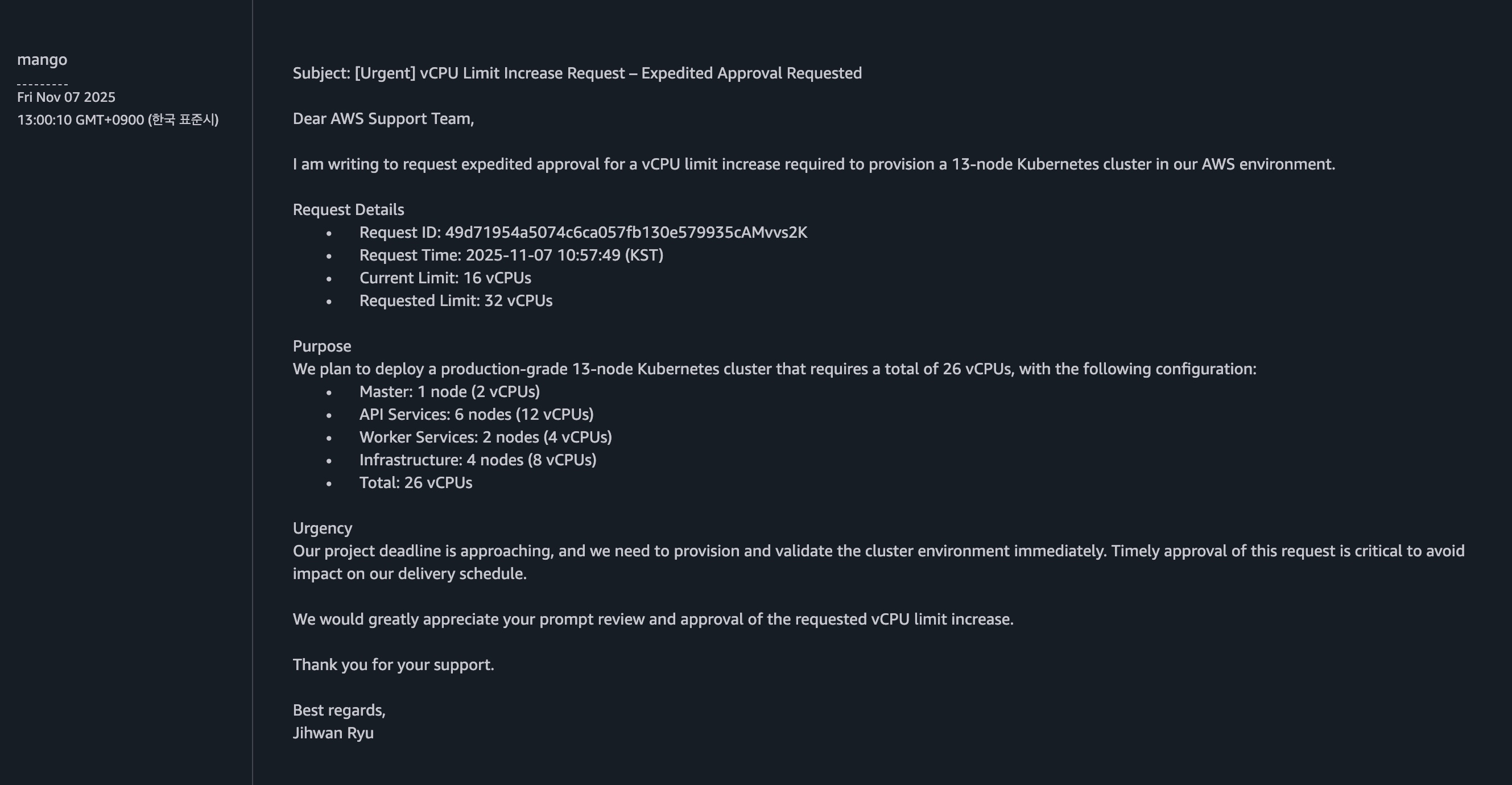 클러스터를 구축하는 기간은 일주일 정도 소요했다.