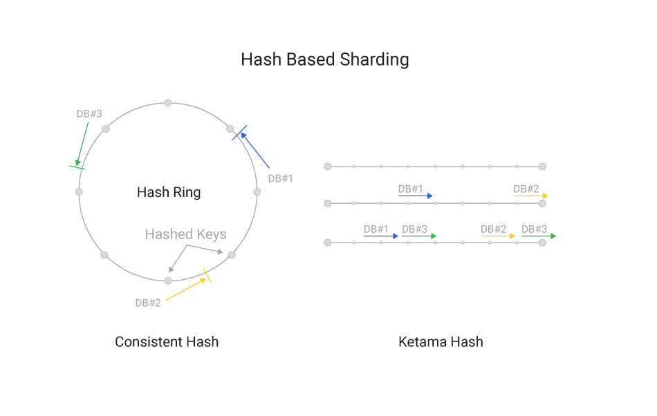 주로 DB 샤딩에 적용되는 방법론입니다. 이코에코에서는 SSE 분산 라우팅용으로 적용했으나, 현재는 Pub/Sub안으로 대체되었습니다.